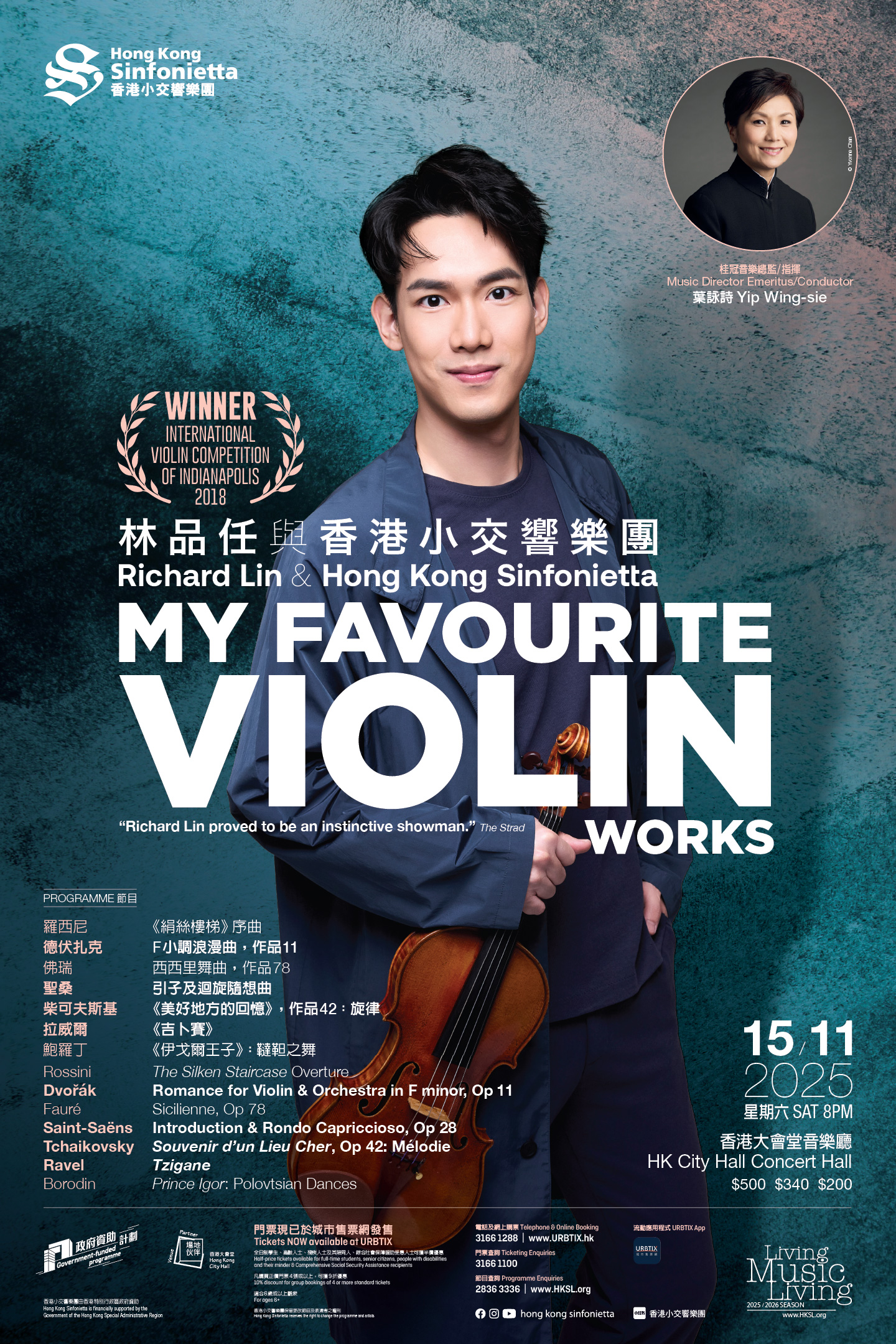 Following his last sold-out appearance in 2022, Taiwanese-American violin sensation Richard Lin – Gold Medallist of the 2018 International Violin Competition of Indianapolis – is returning to Hong Kong to collaborate with Hong Kong Sinfonietta and Music Director Emeritus Yip Wing-sie once again, this time presenting an encompassing programme showcasing a selection of best-loved violin works! Expect a dazzling display of virtuosity in Ravel’s Tzigane and Saint-Saëns’ Introduction & Rondo Capriccioso, and drift into romantic reverie in Dvořák’s Romance for Violin & Orchestra and Tchaikovsky’s Mélodie from Souvenir d’un Lieu Cher – you will fall in love with the violin like never before!