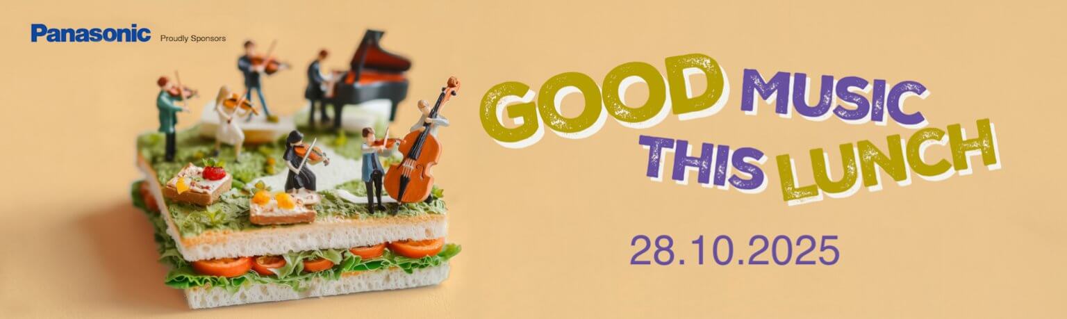 由信興集團冠名贊助,香港小交響樂團《Panasonic Proudly Sponsors: Good Music This Lunch》免費午間音樂會,以室樂的悠揚樂聲,配搭出滋味無窮的音樂餐點,為您在忙碌的一天注入滿滿能量。