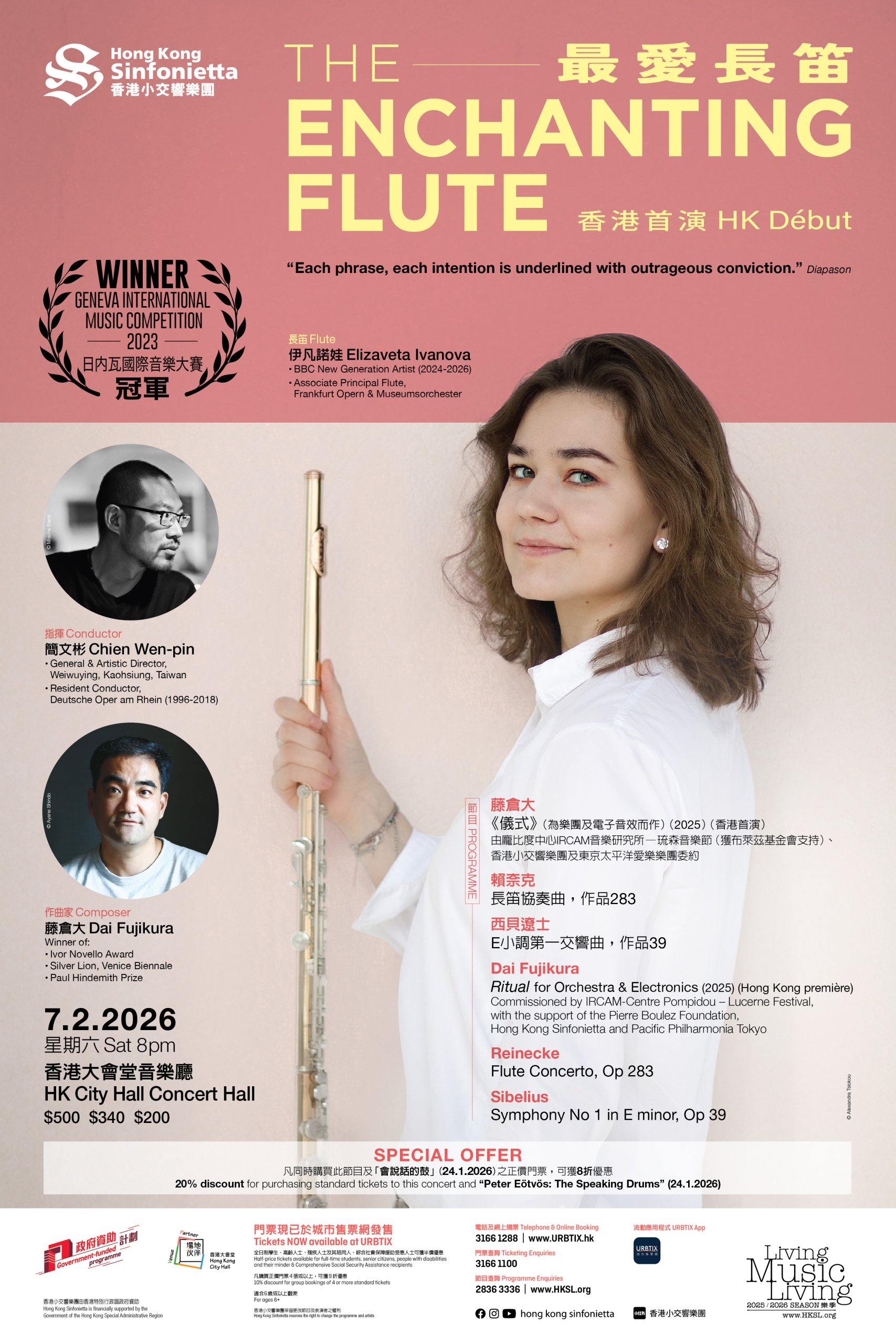 明亮、優美而靈動,長笛擁有特殊的音樂魅力,吸引眾作曲家為其度身訂造樂曲,包括浪漫時期德國作曲家賴奈克。他筆下的長笛協奏曲既非凡而迷人,堪稱長笛曲目中的經典。香港小交響樂團將邀得2023年日內瓦國際音樂大賽冠軍得主伊凡諾娃來港演繹此曲。伊凡諾娃的演奏流暢細膩,更獲選為BBC 新生代藝術家(2024-2026),並自2022年起擔任法蘭克福歌劇院及博物館樂團的副長笛首席。